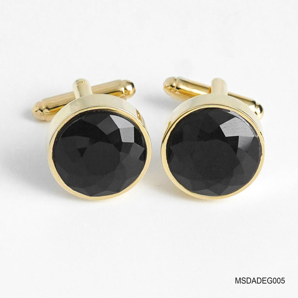 Faceted Black Meteorite Fengshui Gemstone Luxury 18K Gold-Plated Cufflinks for Men MSDADEG005 | Tinh Vu Collection | Vietnam