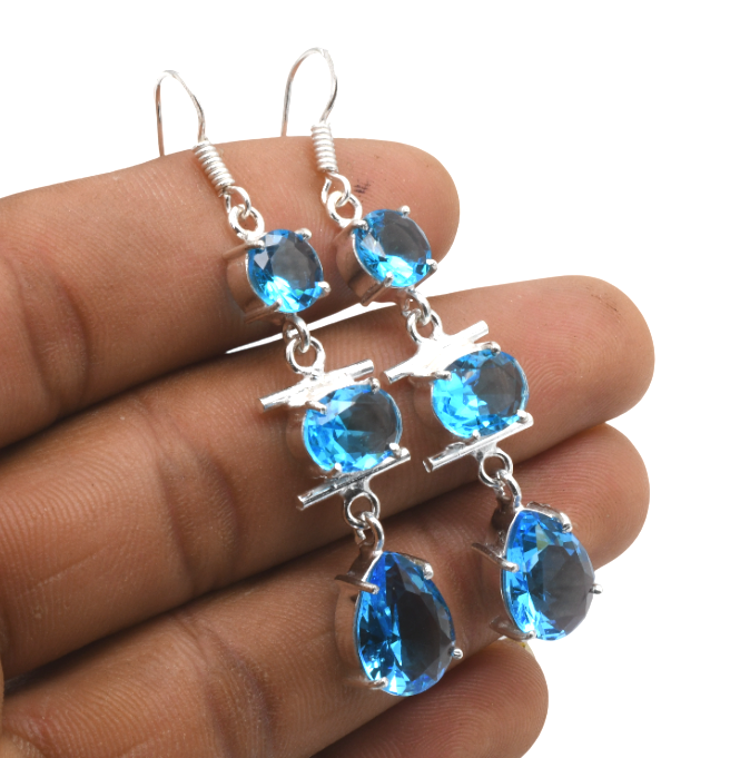 Faceted Blue Topaz Earrings 925 Sterling Silver Earrings Gemstone Antique Jewelry Handmade Solitaire Drop Dangle Earrings