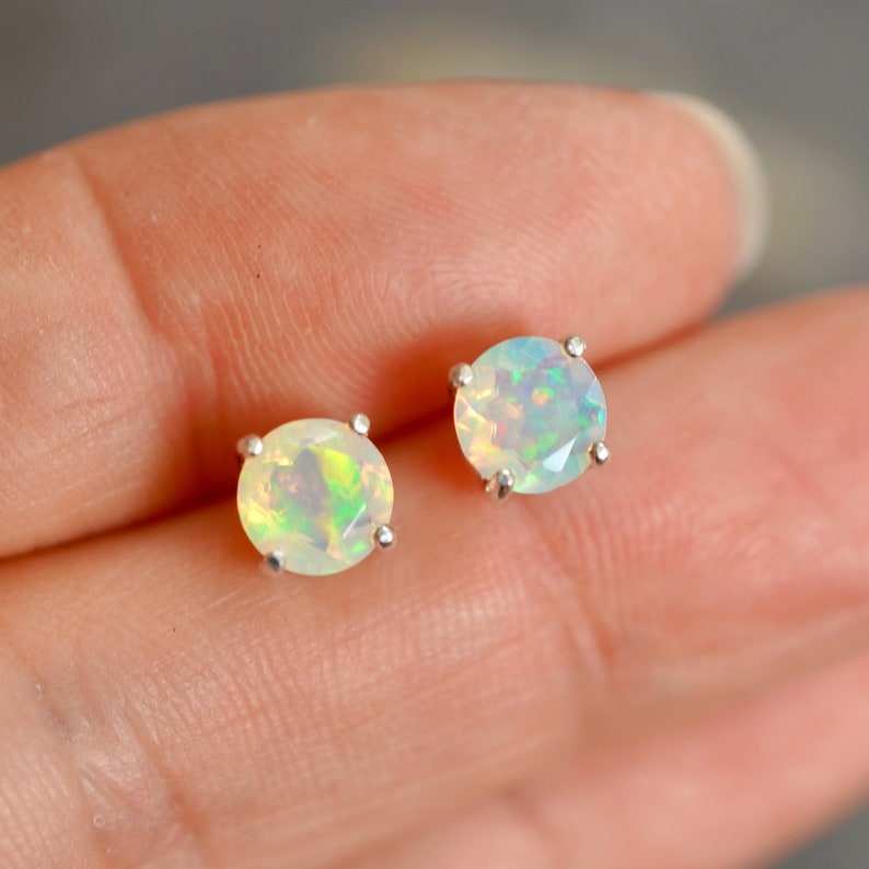 Keyword:Ethiopian Welo Opal Stud Earrings Sparkling multi fire Stones