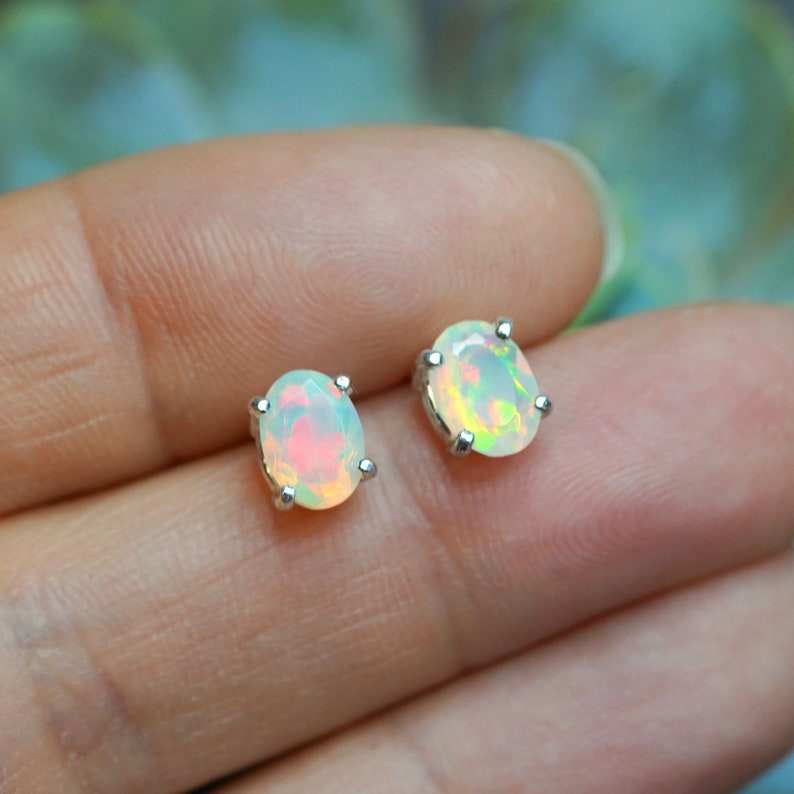 Faceted Ethiopian Welo Opal Stud Earrings Sparkling multi fire Stones