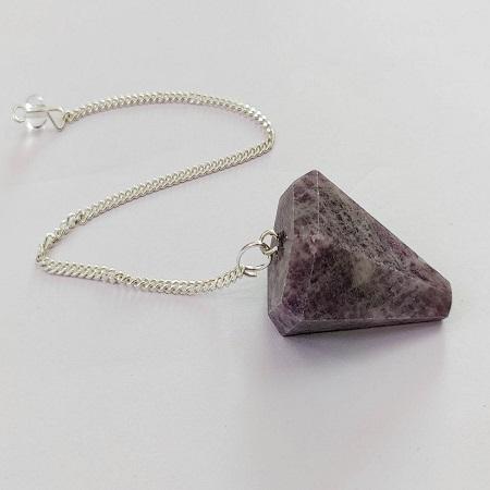 Healing and Dowsing Faceted Lepidolite Crystal Pendulum Semi-Precious Stone Craft for Sale