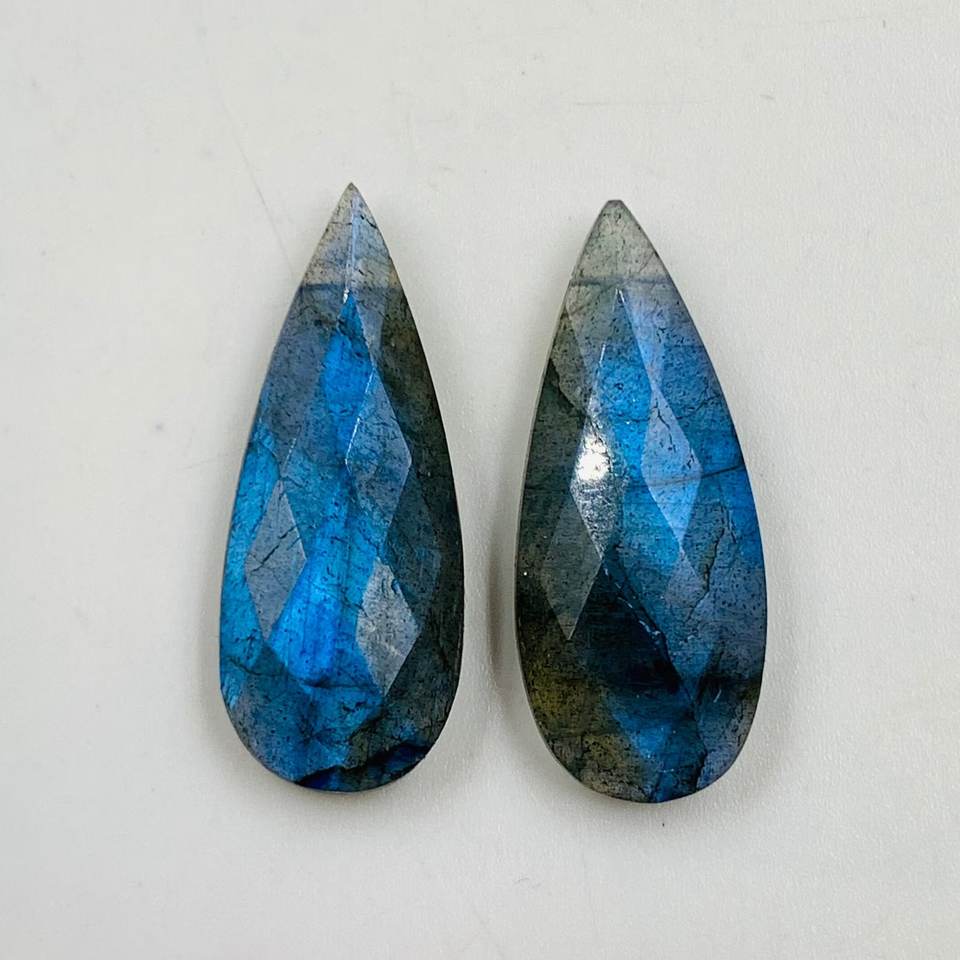 Faceted Long Pear Natural Labradorite Gemstone Matched Set Stones for DIY Jewelry Craft Projects and Designer Creations