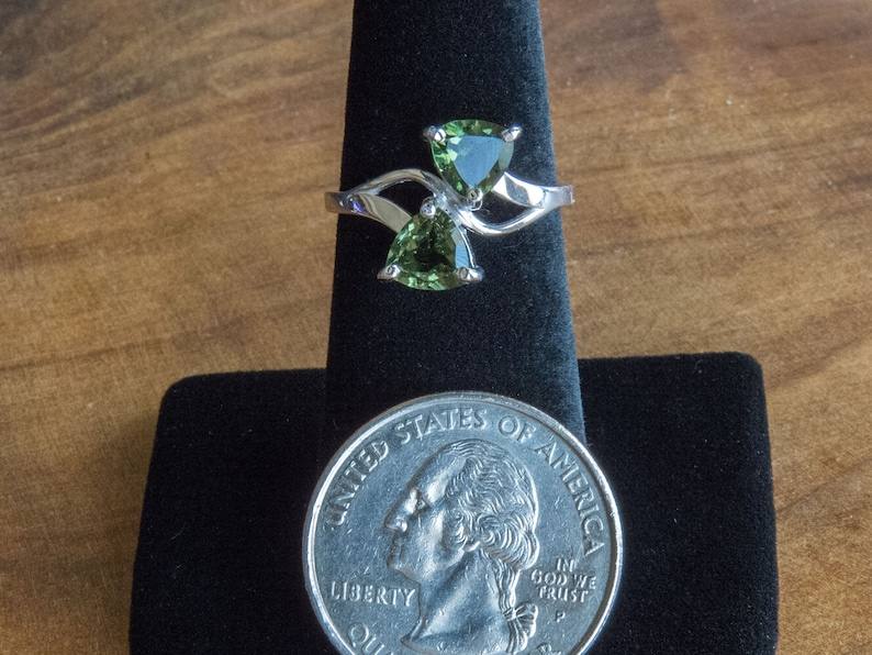 Faceted Moldavite Sterling Silver Bezel Setting Ring 2x6mm Trillion Cut Stones Museum Grade Meteorite Jewelry for Wedding Party
