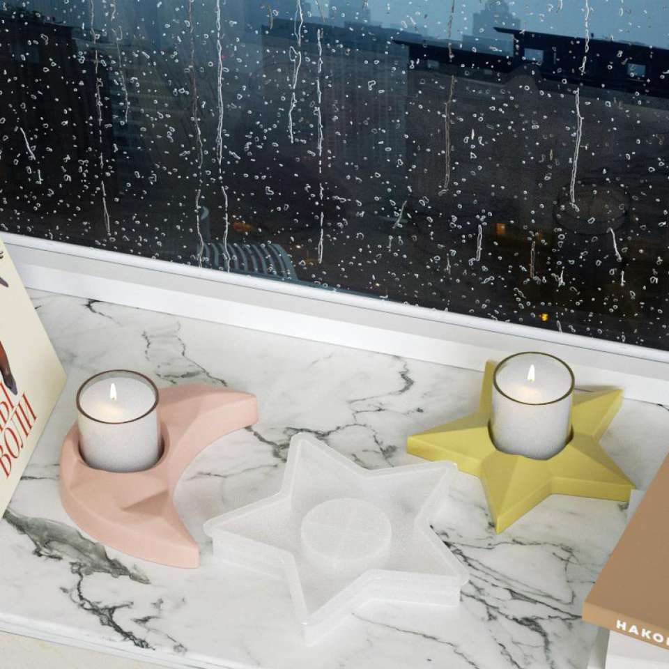 Faceted Star Star Moon Candlestick Aromatherapy Candle Holder Gypsum Epoxy Resin Candle Silicone Mold