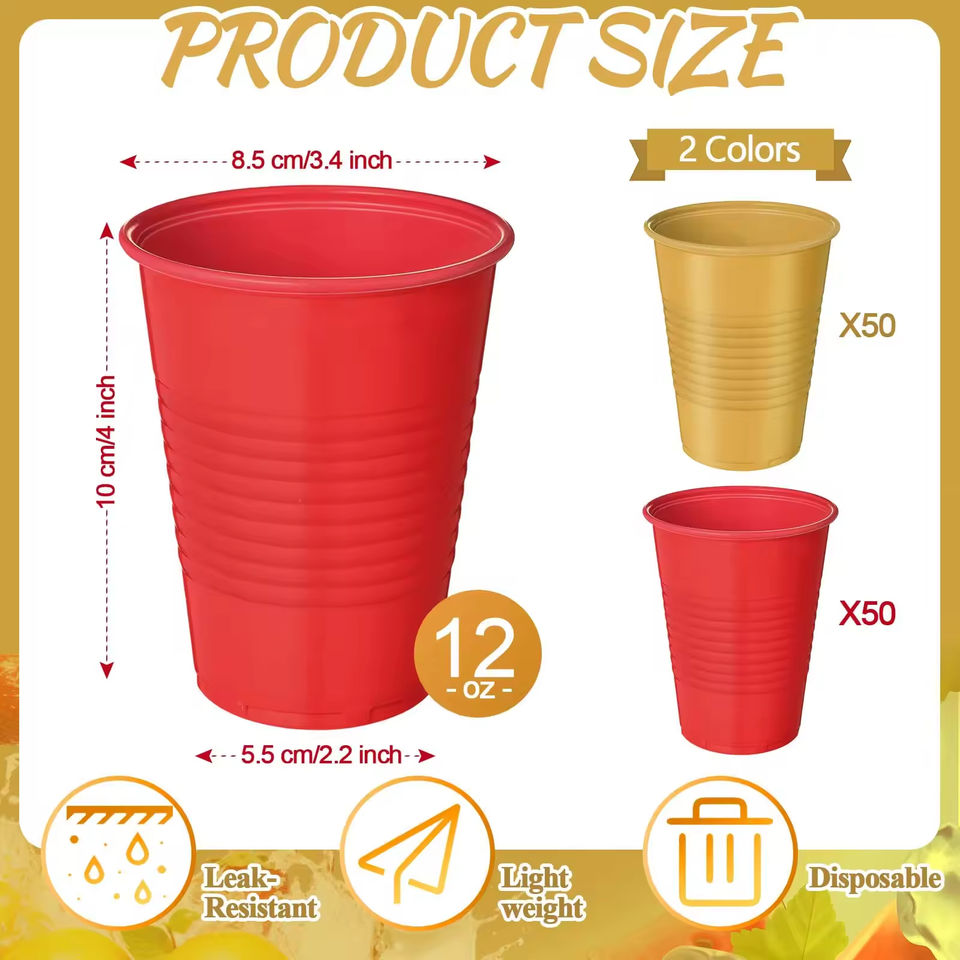 Factory 16 oz Disposable Plastic Red Cups, Party Drinking Cups for Events and Everyday Use