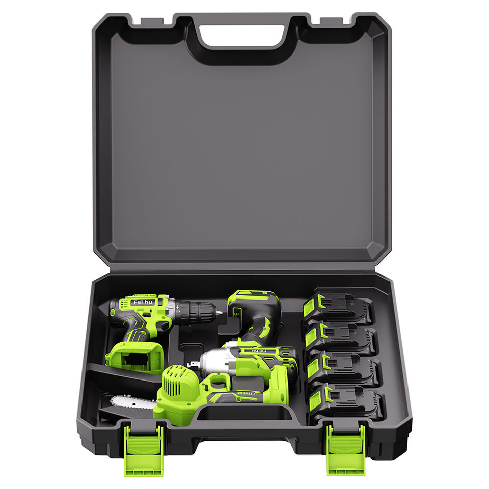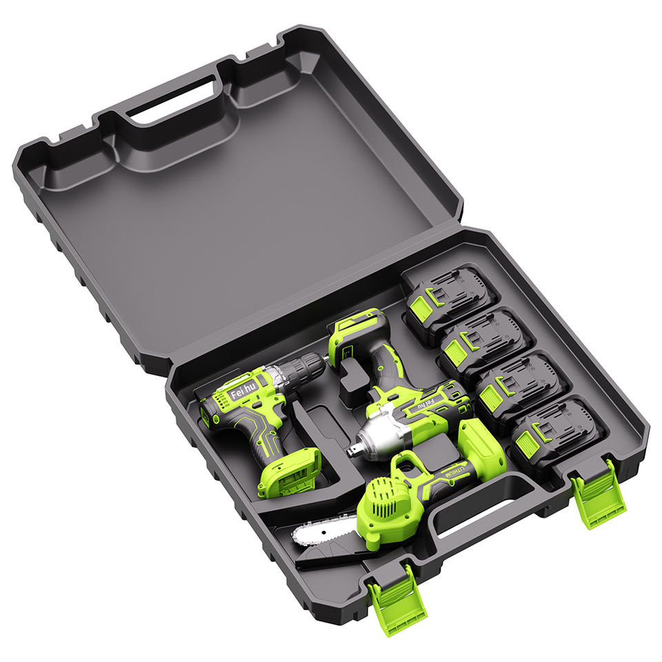Factory 3-pcs Power Drills Kit Electric Cordless Drill Lithium Battery Hand Drill Impact Wrench and Chainsaw Power Tools Kit
