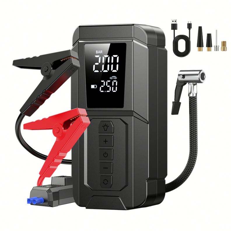 Factory 6000mAh Car Tire Inflator Tire Pressure Monitor Portable Jump Starter Emergency Battery Booster 150 PSI Max Pressure
