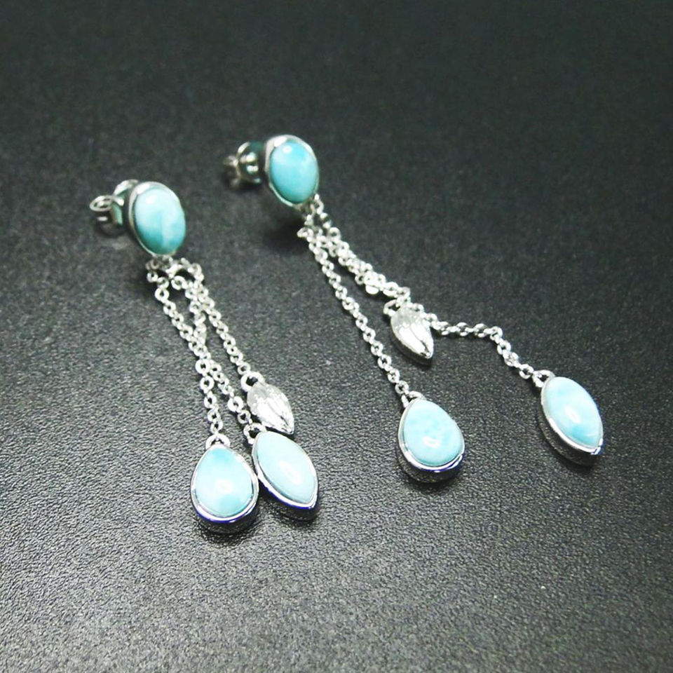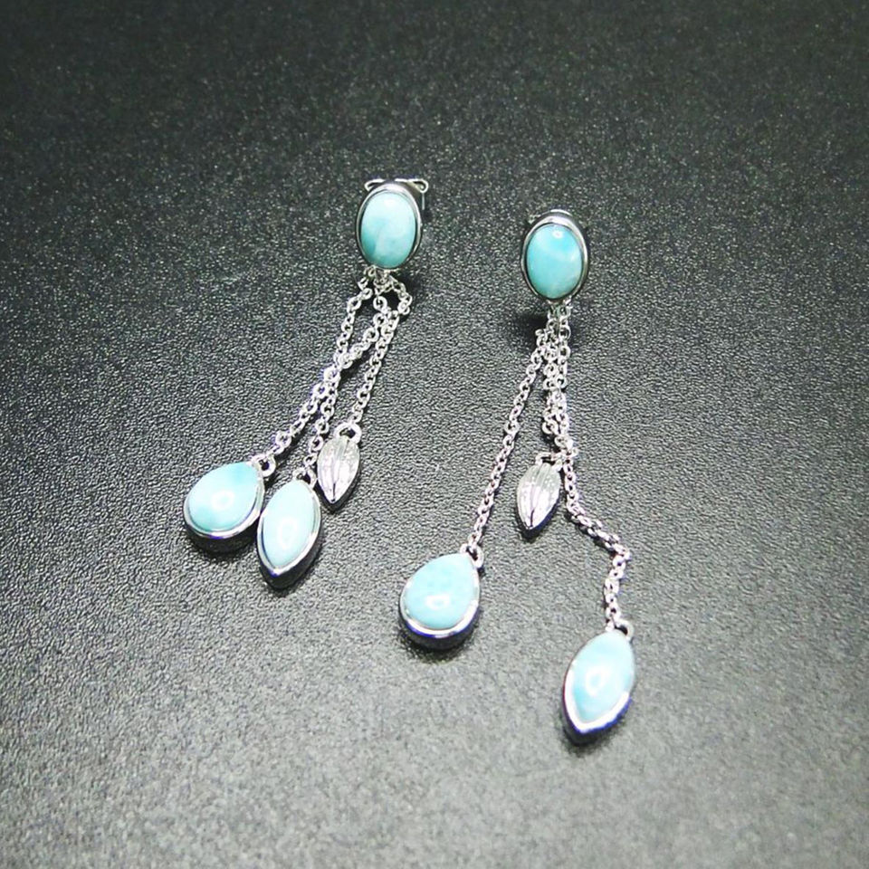 Factory 925 Sterling Silver Jewelry Natural Blue Larimar Drop Earrings Larimar Dangle Earrings