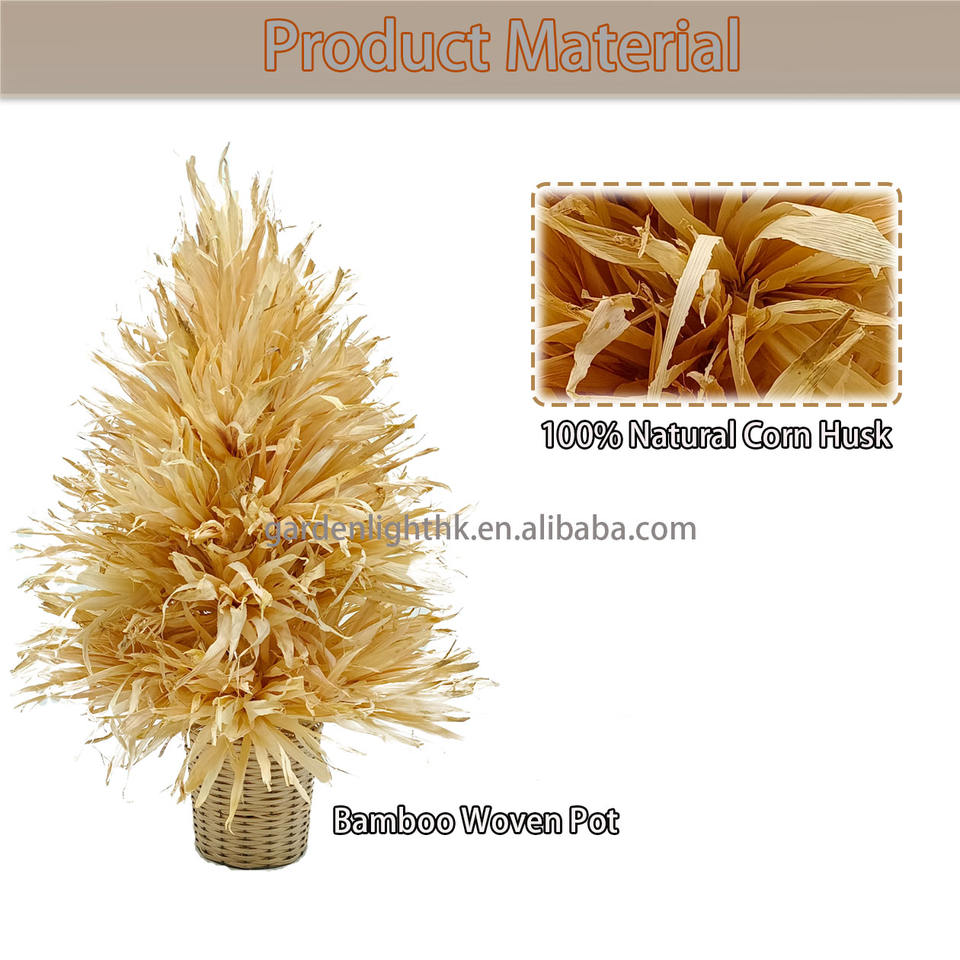 Factory Artificial Potted 3FT Natural Corn Husk With Bamboo Woven Pot Christmas Tree