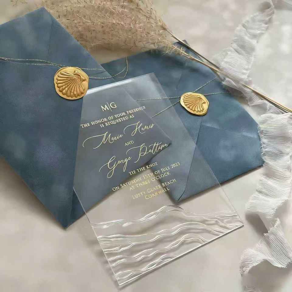 Factory Custom Acrylic Glass Invitation Card Dull Wedding and Engagement Printed Pattern Packed in Boxed