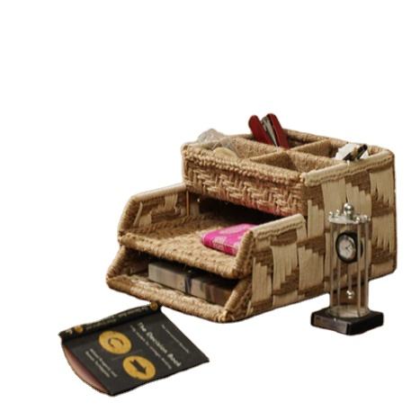 Factory Cheap Price Desk Storage Basket Organizer Woven Jute Fiber Home Storage Desk Organizer With Compartment for Kids Room