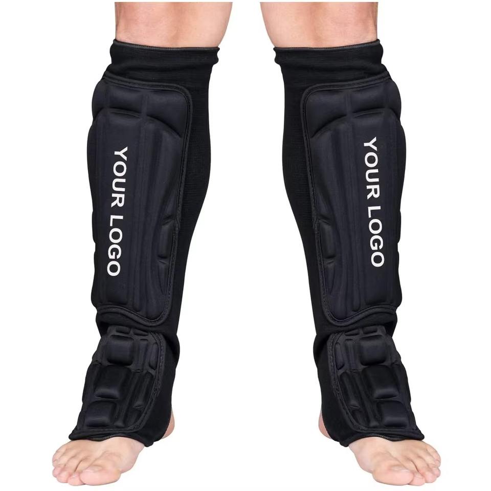 Factory Direct Comfortable Double Strap Leather Shin Guard Boxing MMA Training Breathable Hook Loop Closure Professional
