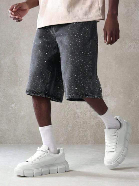Custom Men Denim rhinestone shorts