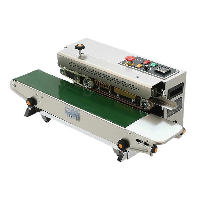Factory Continuous Automatic Band Sealer Stainless Steel Pouch Food Bag Adjustable Printing Date Horizontal Vertical Sealing