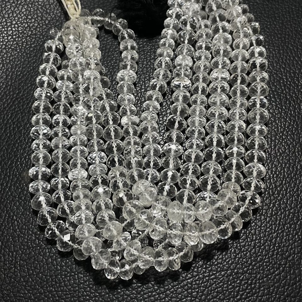 Factory Calibrated White Crystal Quartz Faceted Rondelle Shape Briolette Beads for Jewelry Supplies