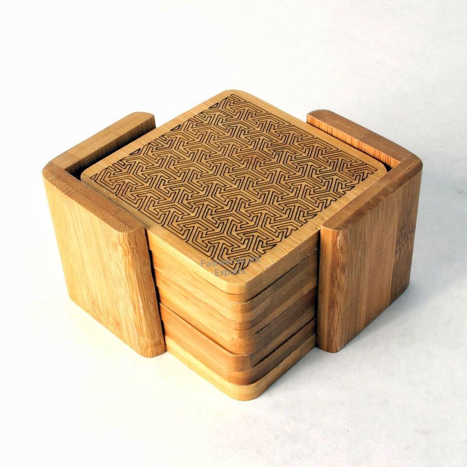 Factory Custom Logo Laser Engraved 6-Piece Bulk Set of Natural Wooden Walnut Coasters Square Bamboo Cup Mats & Pads