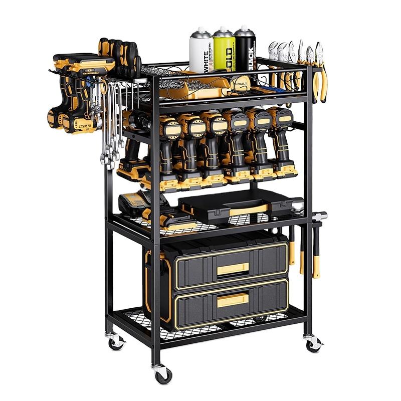Custom 4-Layer Heavy Metal Garage Storage Rack with Wheels Tool Organizer Utility Rack Direct From Factory