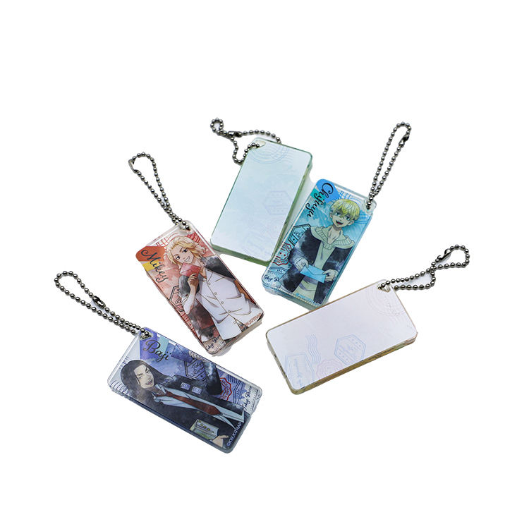 Factory Custom Acrylic Block Tag Painted Plating Silk Screen Printing Cartoon Anime Characters Boys Acrylic Tag with Bead Chain