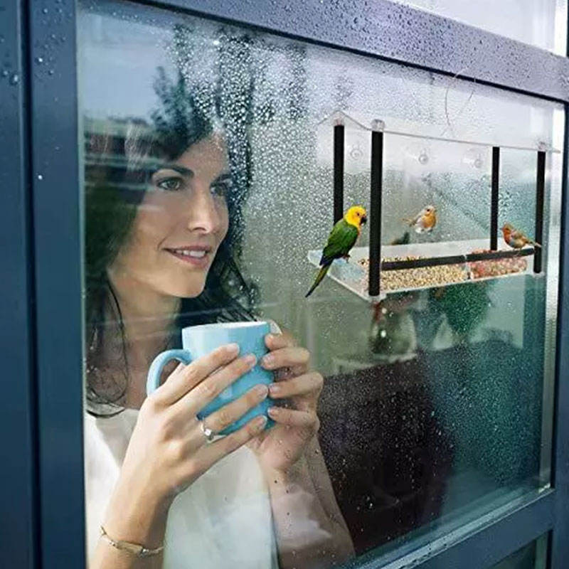 Factory Custom Large Size Acrylic Window Bird Feeder with Suction Cups Seed Tray Pmma Material Display Stand for Shelf Use