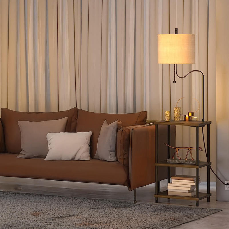 Factory Custom Contemporary Freestanding Floor Lamp for Bedroom Living Room & Dining Room Brushed Brass Finish Blue Lamp Shade
