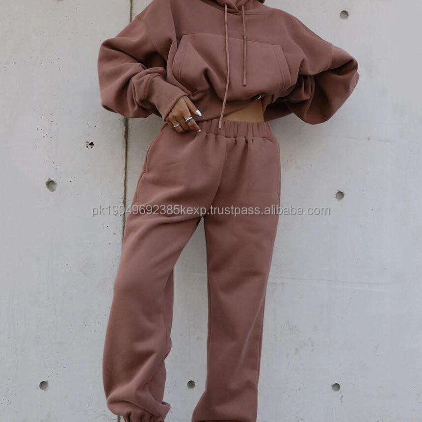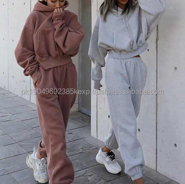 Factory Custom Crop Top Hoodie Set Blank Casual Short Top Cropped Two Piece Women Set Oversized Hoodies