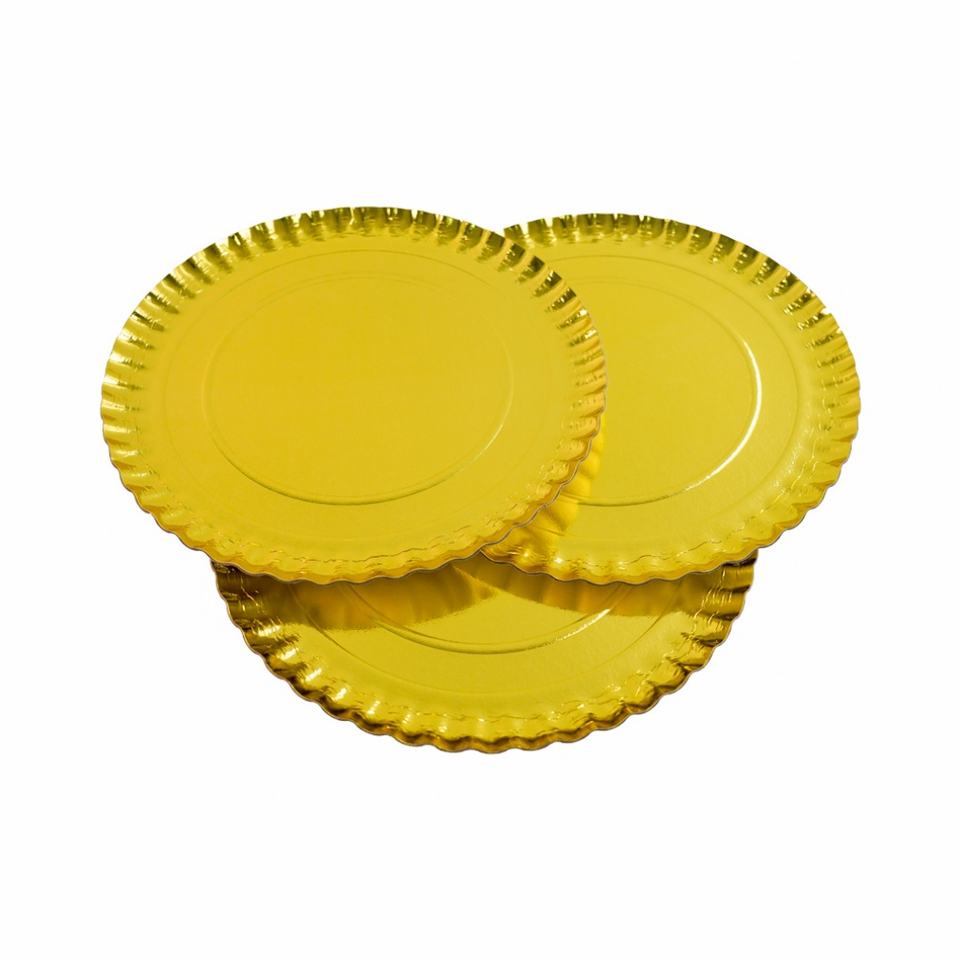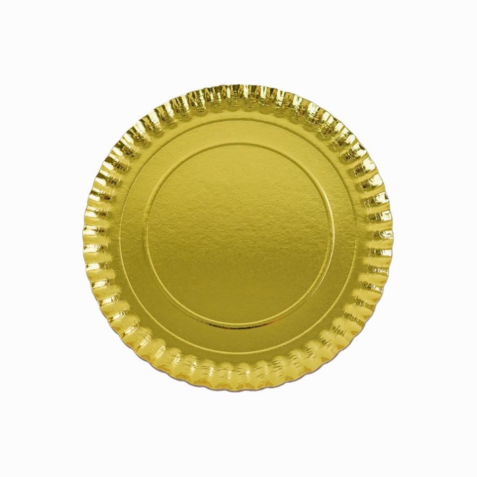Factory Custom Disposable Gold Paper Cake Plate for Parties for Cookies Sugar Snacks Candies Hamburgers Embossing Gold Foil