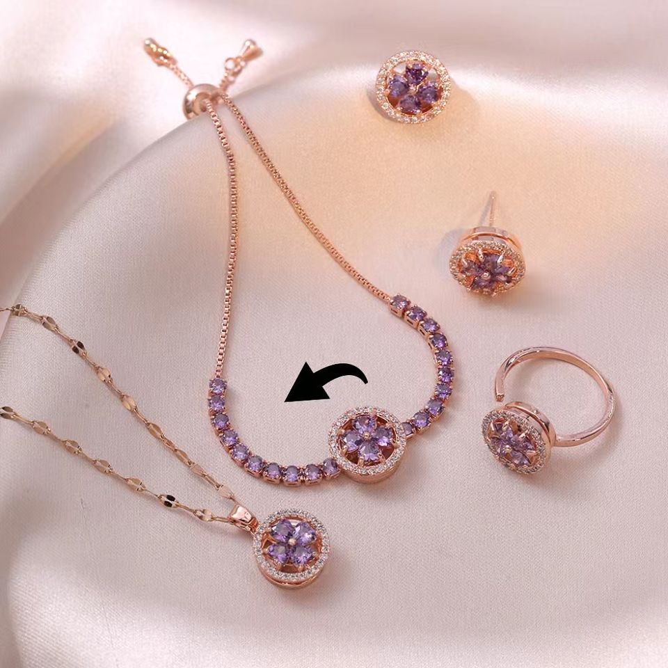 Factory Custom European and American New Net Red Water Diamond Bracelet Earrings Set Anxiety Decompression Purple Gem Ring