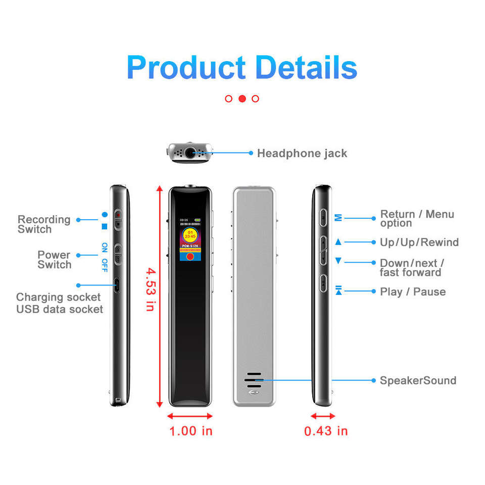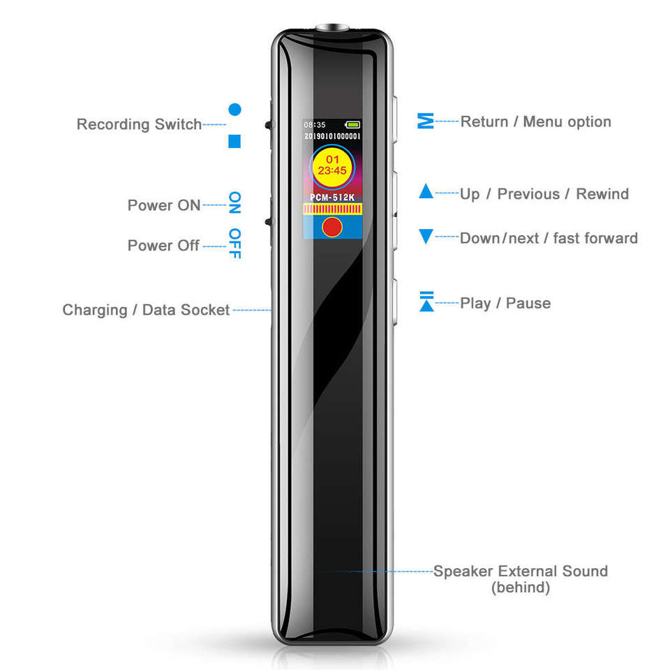 Factory Custom HD Color Screen One - key Recording Noise Reduction Digital Voice Recorder Zinc Alloy Meeting Interview