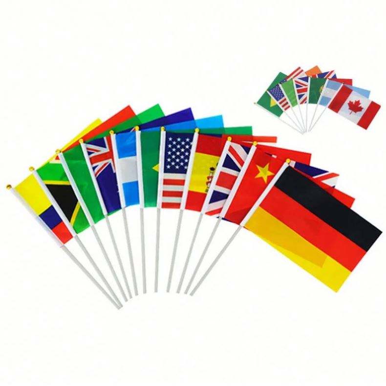 Factory Custom Hand Flag Polyester Free Design Printing Flag Wholesale Country Hand Shaking Stick Flags for Festival