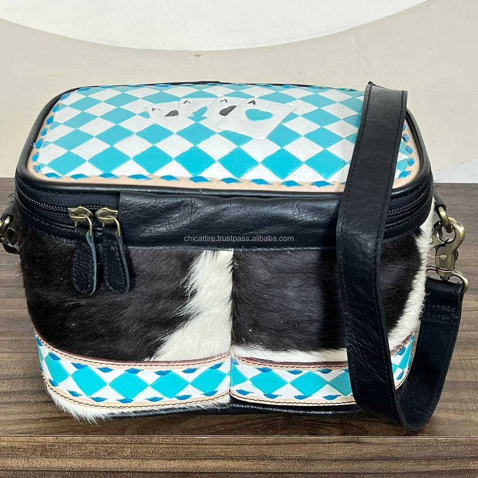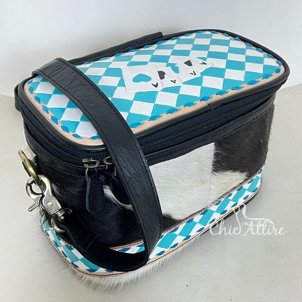 Hand Tooled Checkered Leather Crossbody Cosmetic Bag