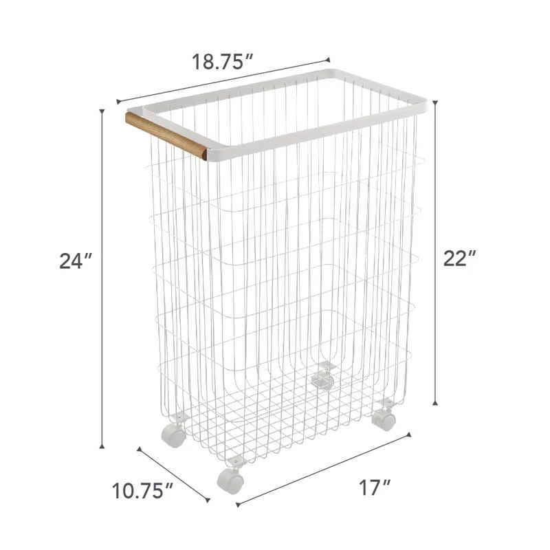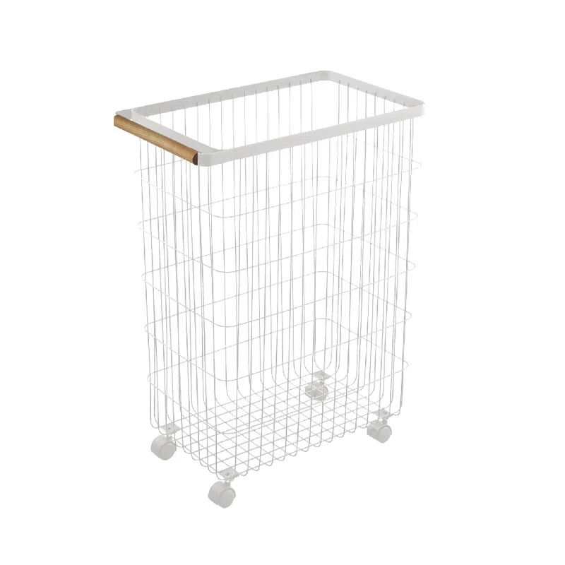 Factory Custom Home Slim Rolling Laundry Basket Hamper Steel + Wood Rolling Laundry Storage Basket With Ring Handles