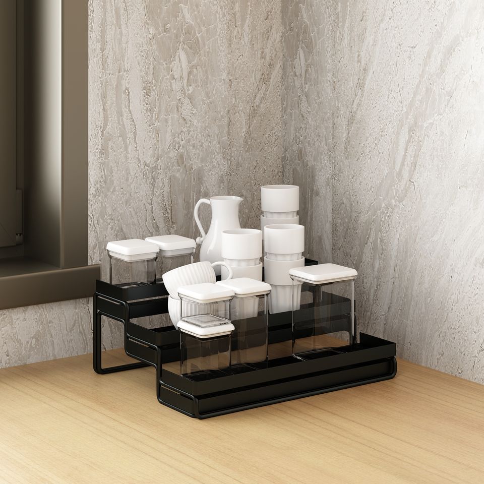3-Tier Kitchen Organizer Shelf Black Iron Folding Rack Used for Spice Bottles Snacks Cosmetics Excellent Kitchen Organization
