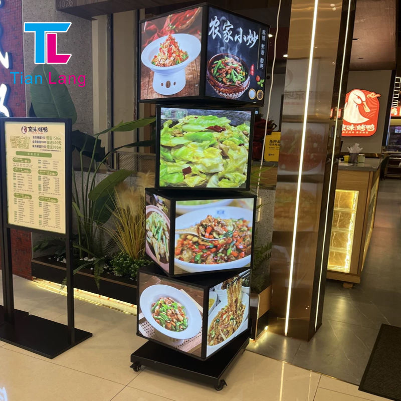 Factory Custom Led Advertisement Sign Led Menu Poster Board Display Hanging Led Box Outdoor Square Rotating Light Box