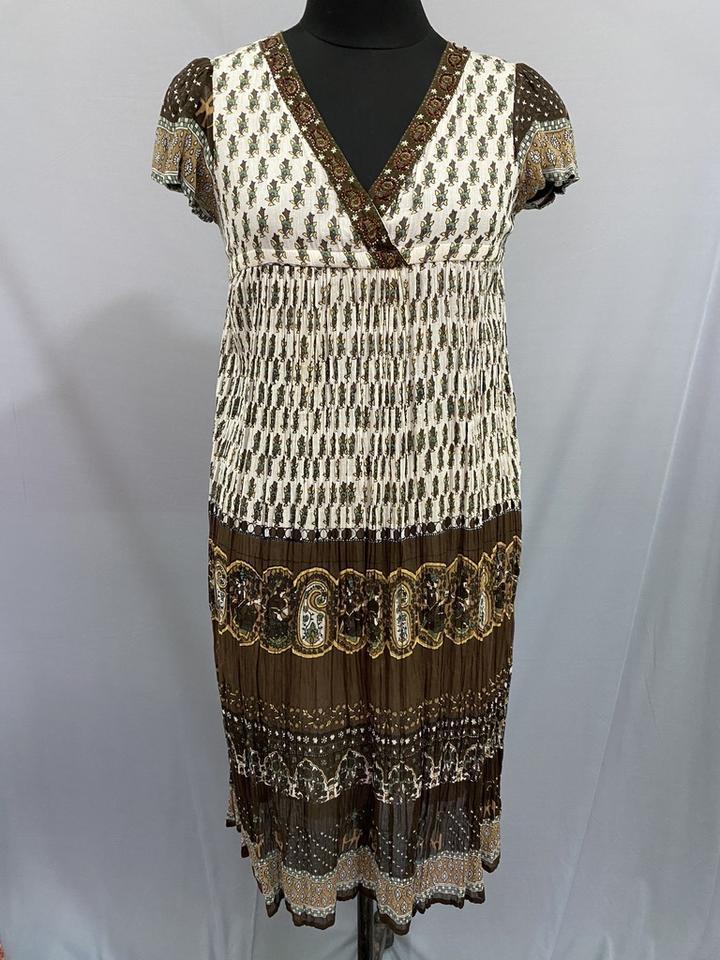 Factory Custom Linen and Cotton Fashionable Cotton Chest Pad Thin MIDI Linen Printed Dress V-neck Summer Women Dress