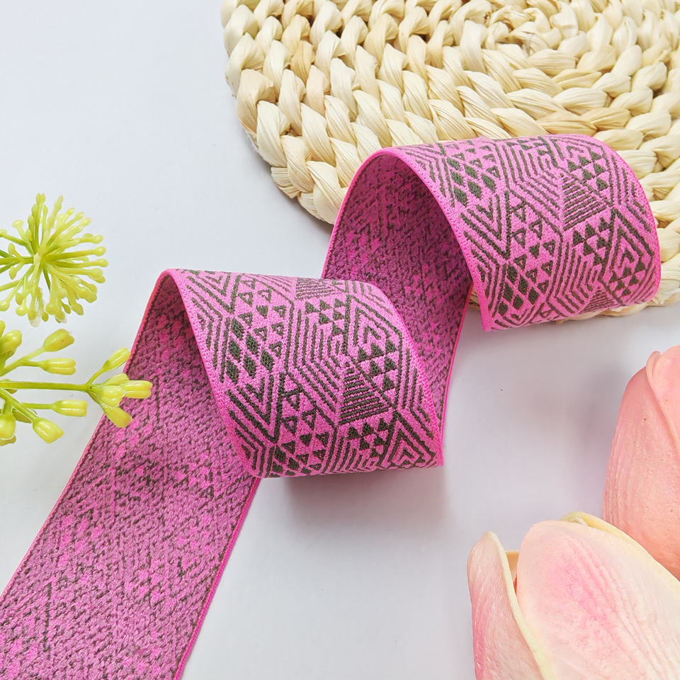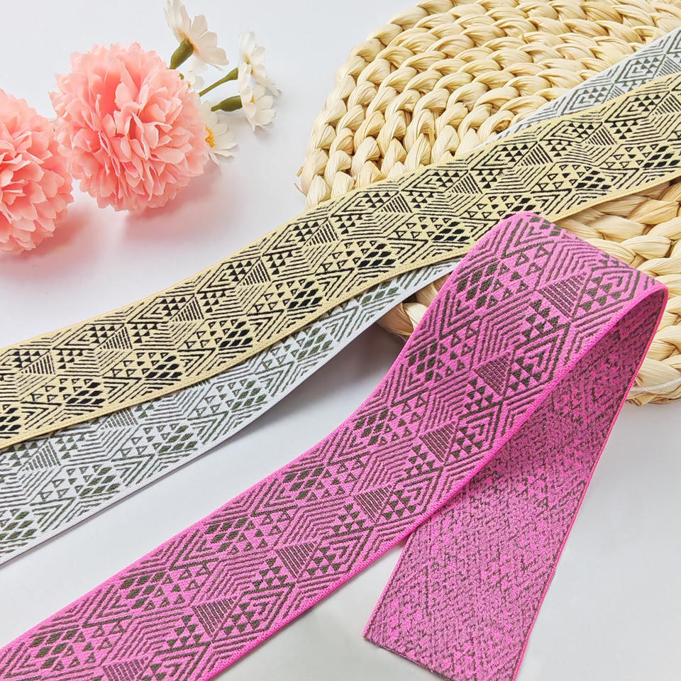 Factory Custom Logo Color Spandex/Nylon Thick Wove Elastic Webbing with Geometry Pattern for Garment Jacquard Letter Logo HH4K