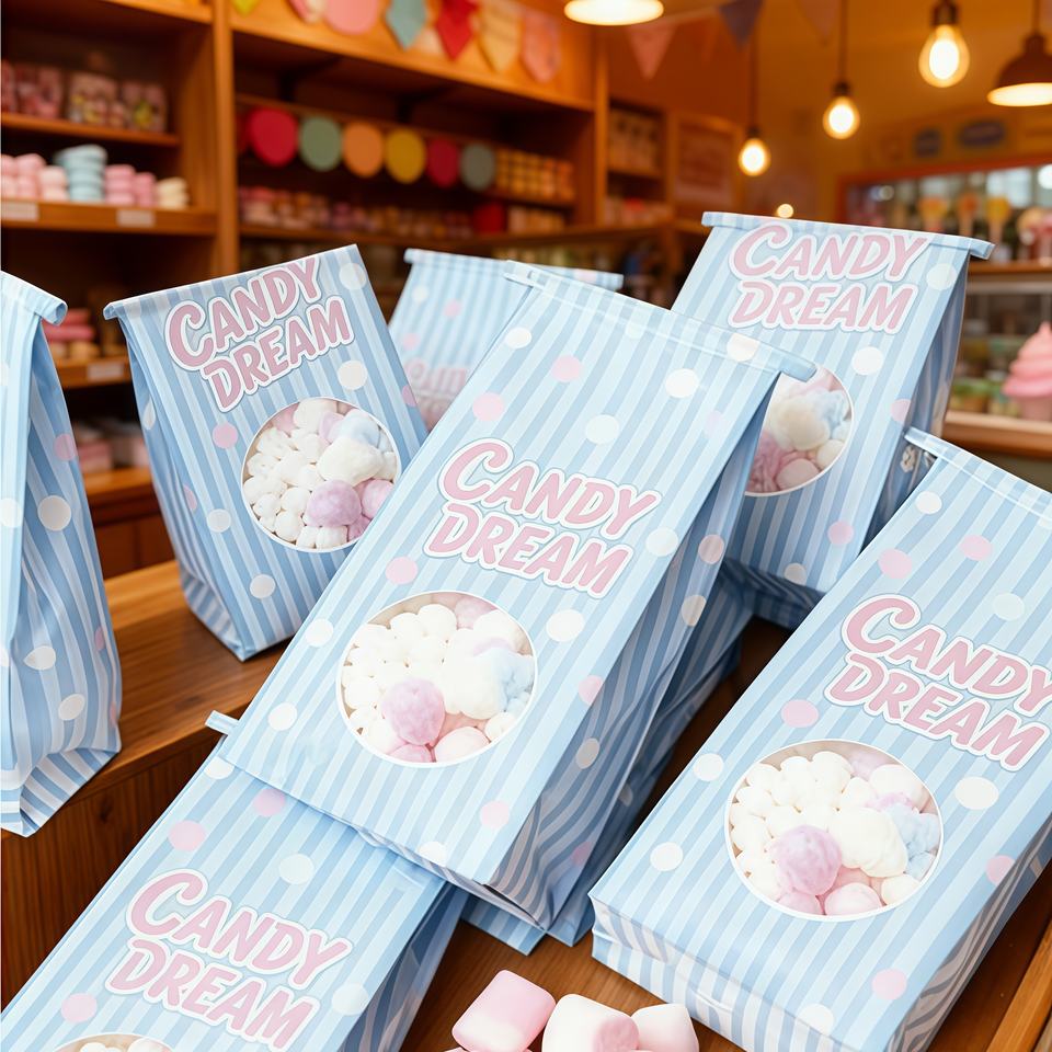 Factory Custom Logo Food Greaseproof Popcorn Candy Cookie Bread Croissant Packaging Tin Tie Kraft Paper Bag With Clear Window