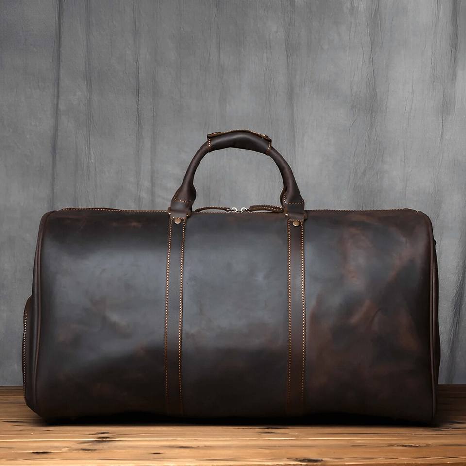 Factory Custom Logo Leather Duffle Bag Real Leather Travel Bag Crazy Leather Vintage Weekend Bag for Men Women