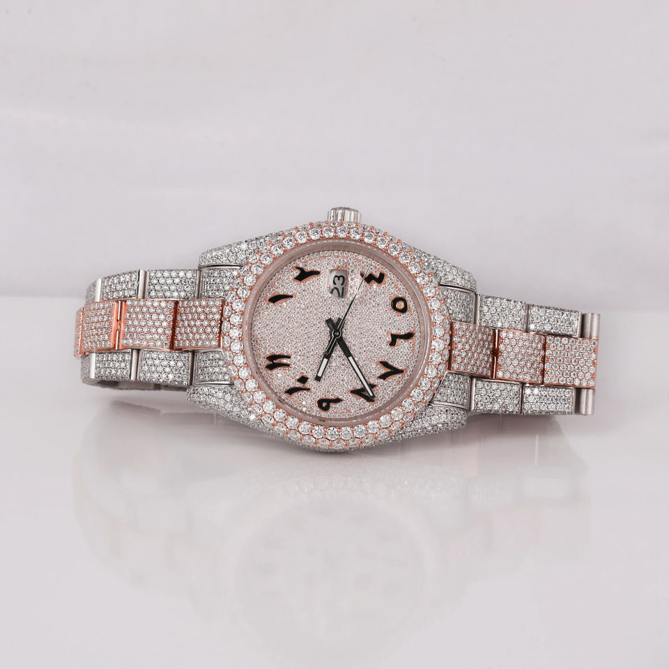 Factory Custom Luxury Man's Watches Full Iced Moissanite Diamond Two Stone Arabic Dial VVS Clarity Stainless Steel Band Digital