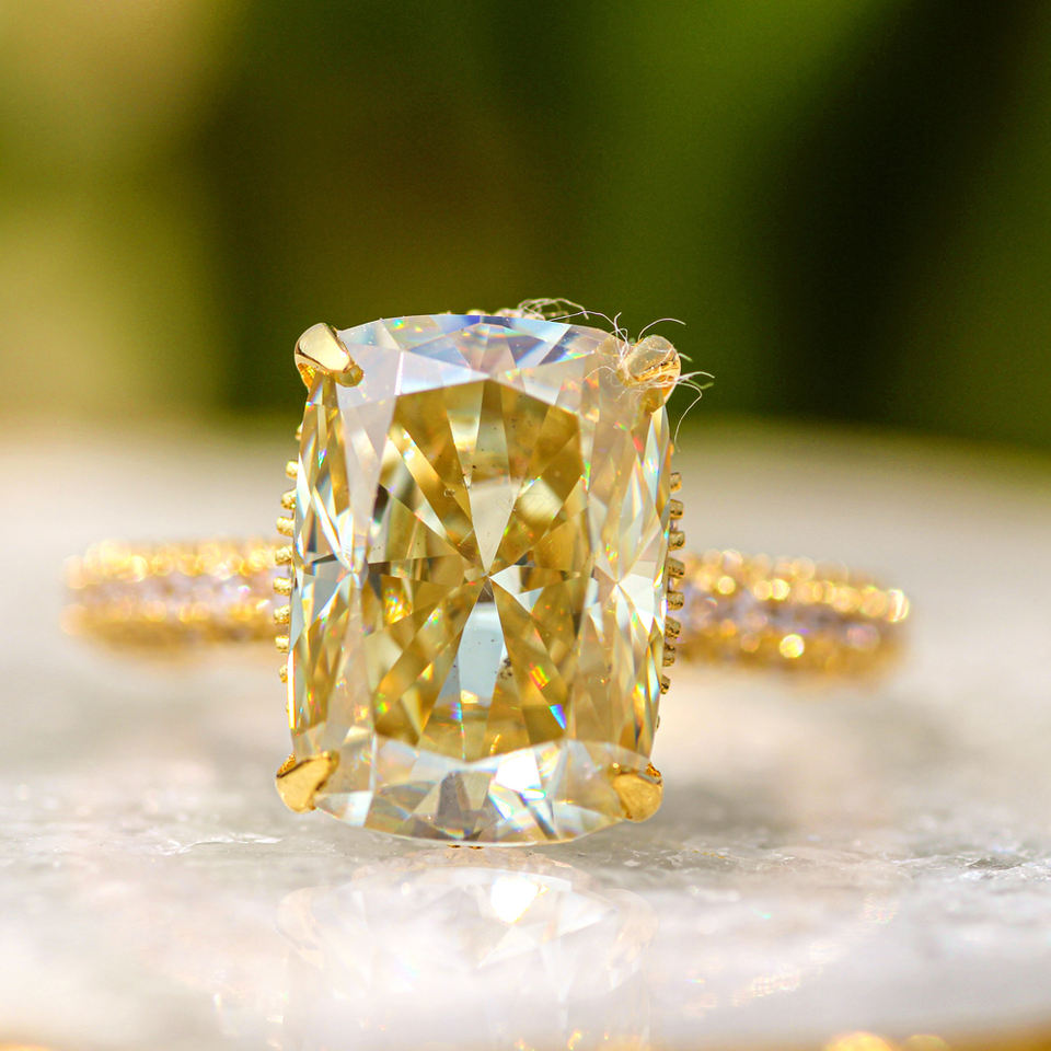 Factory Custom Luxury Women's Wedding Engagement Yellow Gold Cushion Cut VVS Moissanite Vintage Pave Setting Hip Hop Ring Ring