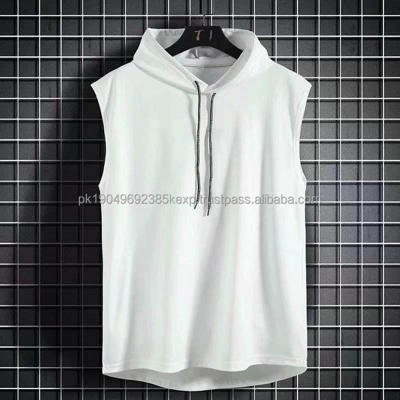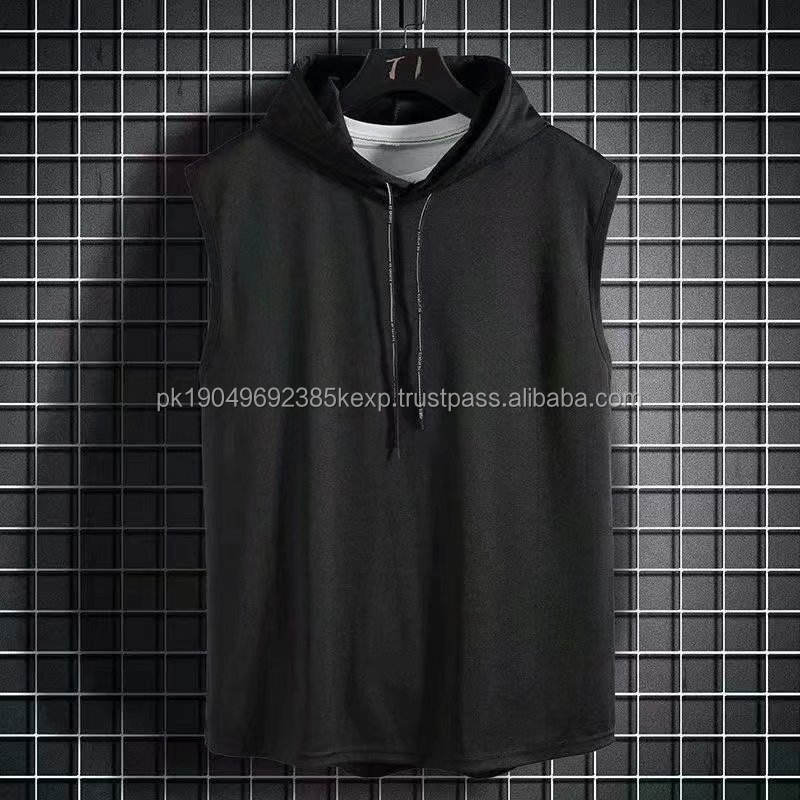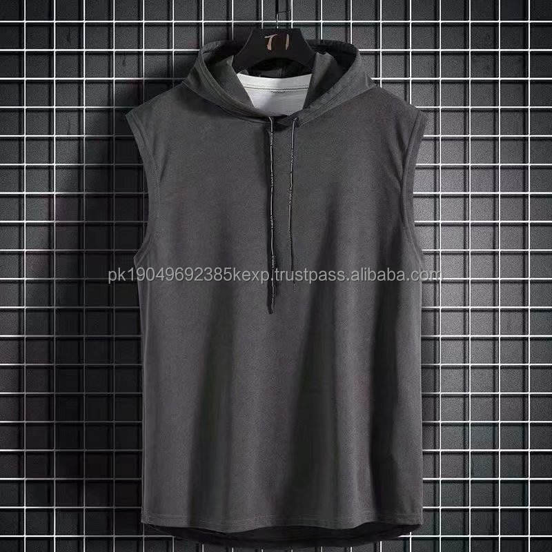 Factory Custom Men's Workout Hooded Sweatshirt Vest Breathable Gym Tank Top & Sleeveless Hoodie in XL Size Printed Pattern