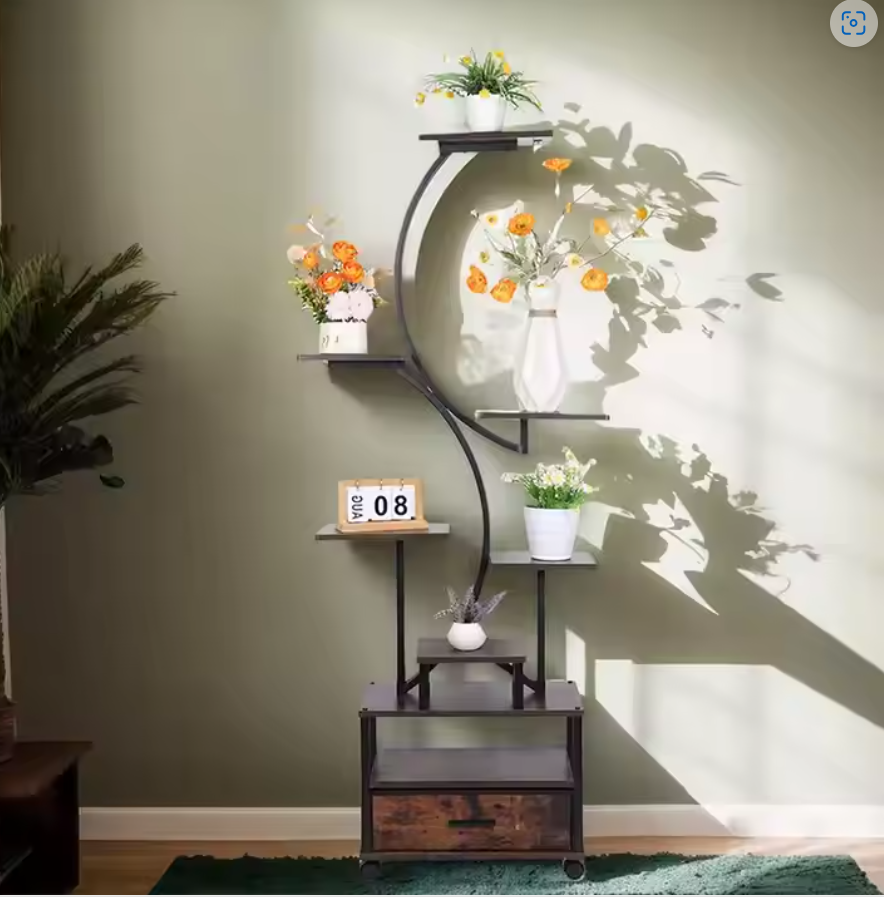 Factory Custom Modern Powder Coated Metal Wood Plant Stand with Large Shelves Durable High Quality Flower Pot Holder