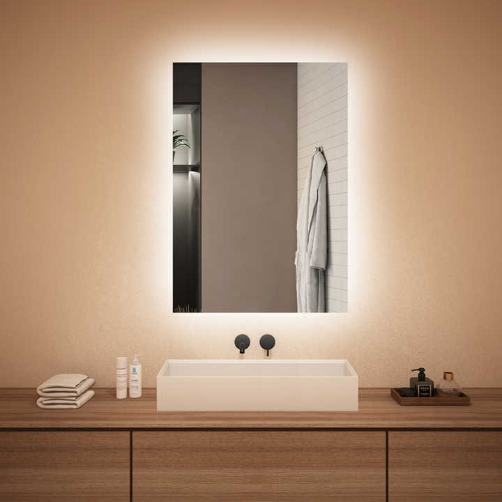 Factory Custom Modern Smart LED Waterproof Rectangle Sandblasting Hotel Bathroom Mirrors Graphic Wall Hanging Installation