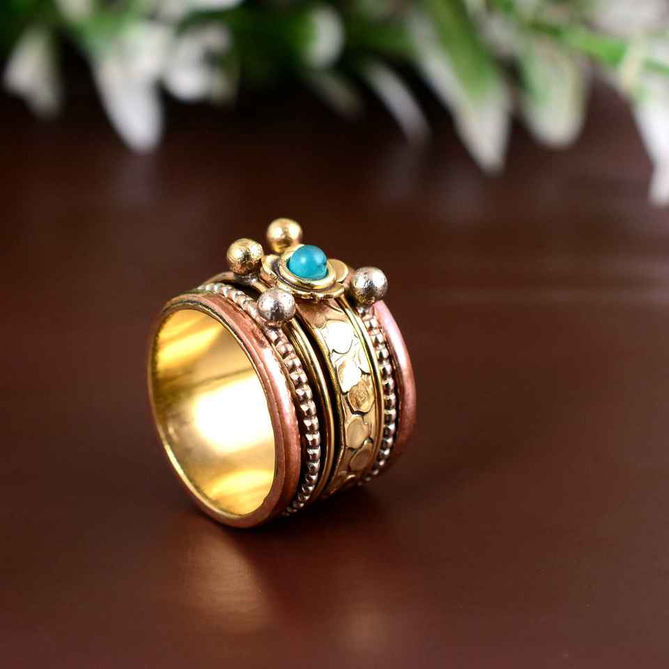 Factory Custom New 18K Gold Plated Turquoise Brass Openwork Trendy Wedding Bands Unisex Ring Jewelry Best Selling