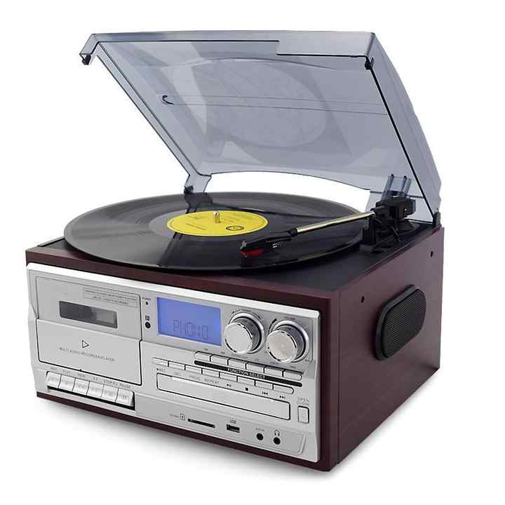 Factory Custom Retro Wood Multi Function Turntable 10 in 1 Cassette Player Recorder CD BT USB SD FM AM Record Player Home Decor