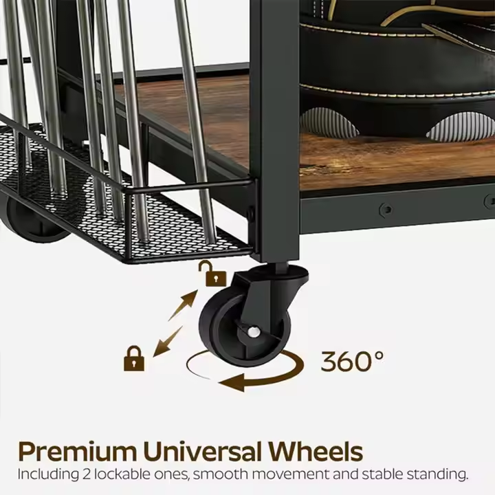 Factory Custom Single Tier Rolling Metal Golf Storage Rack with Wheels for Bag & Equipment