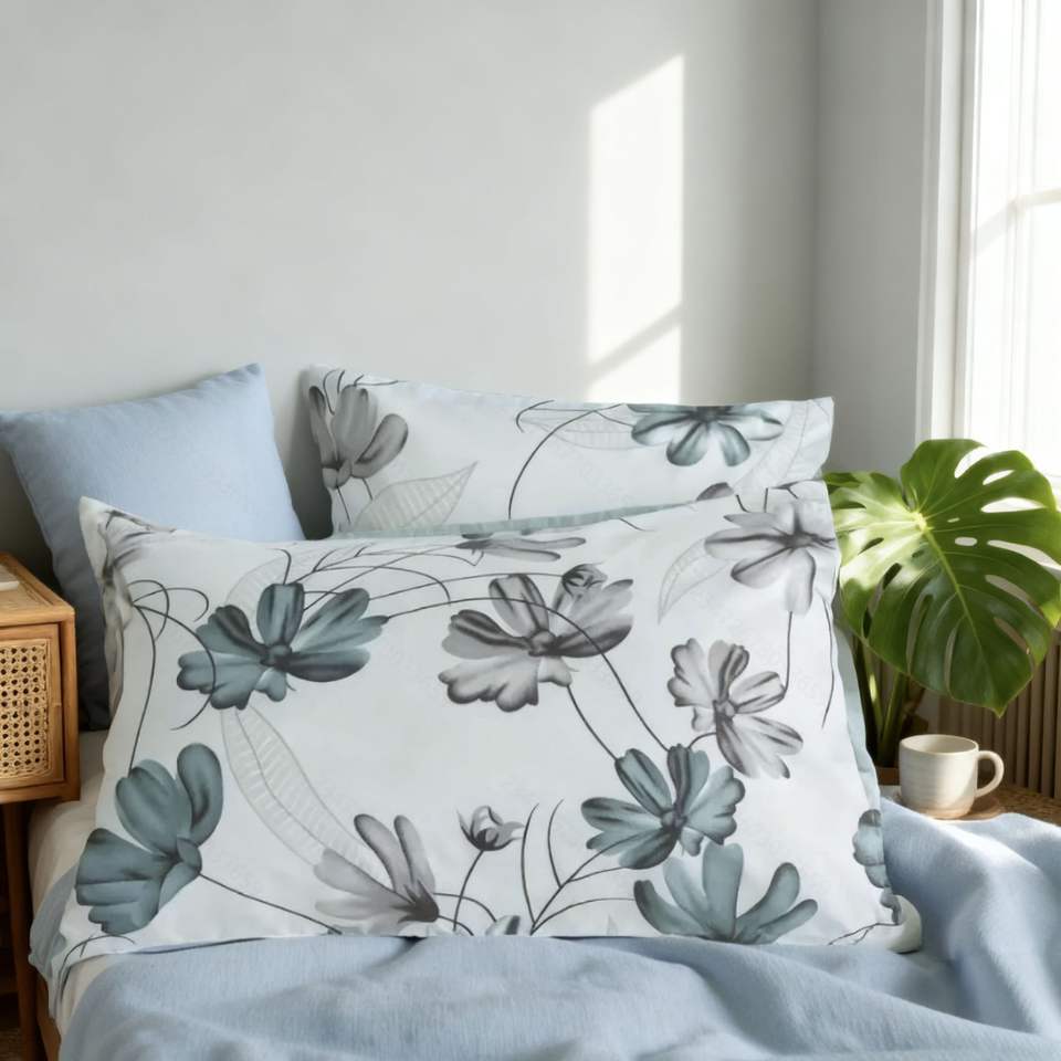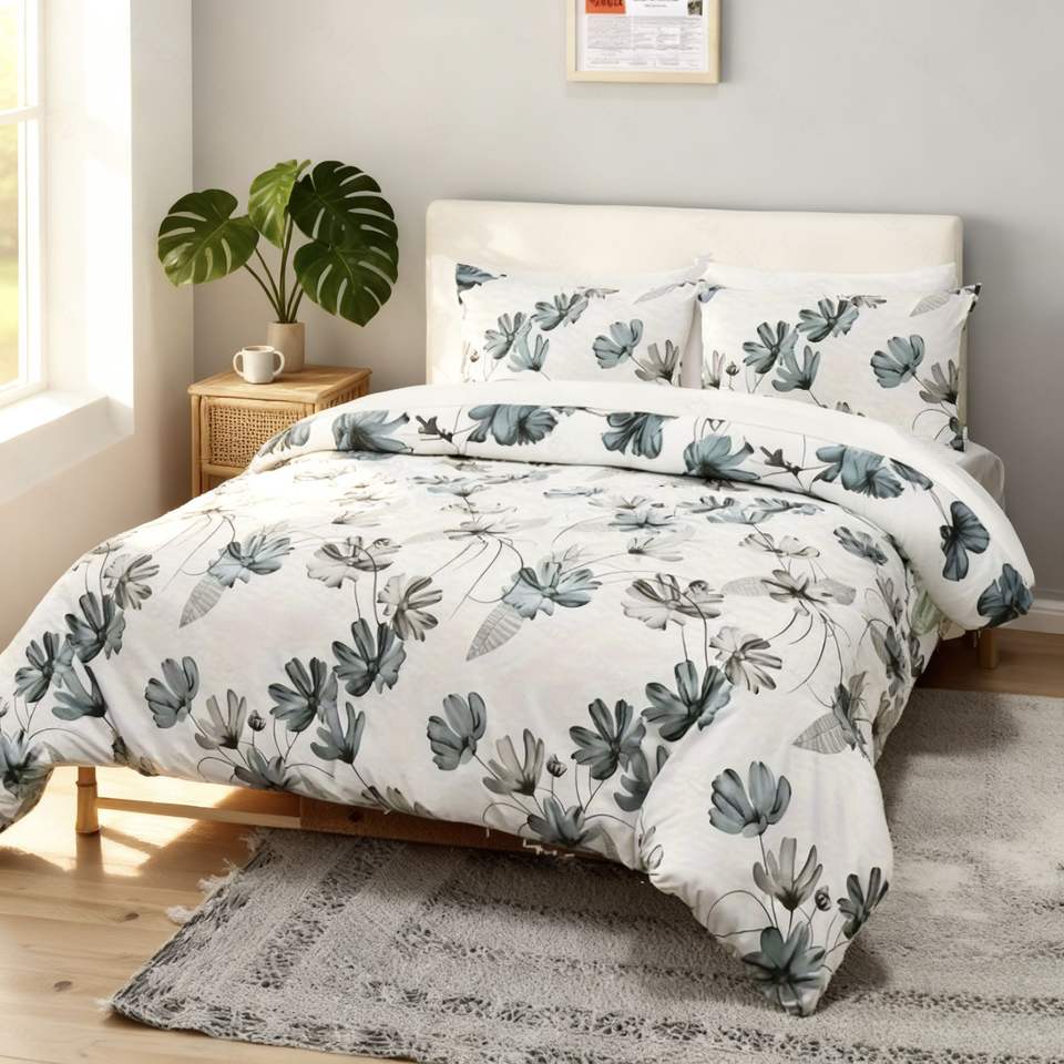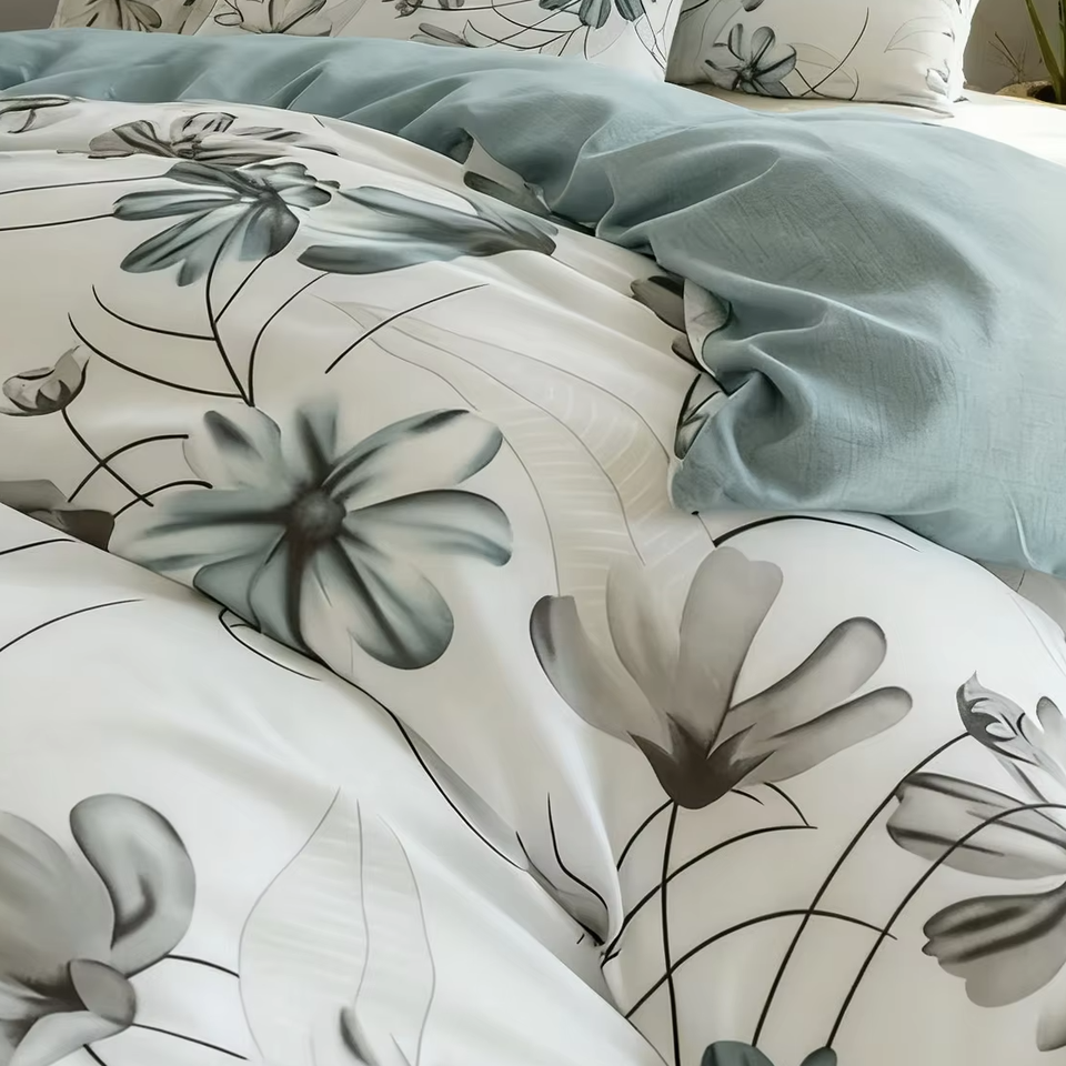 Factory Custom Soft and Breathable Polyester Fiber Home Three-piece Bed Set with Elegant Lotus Flower Pattern for Modern Bedroom
