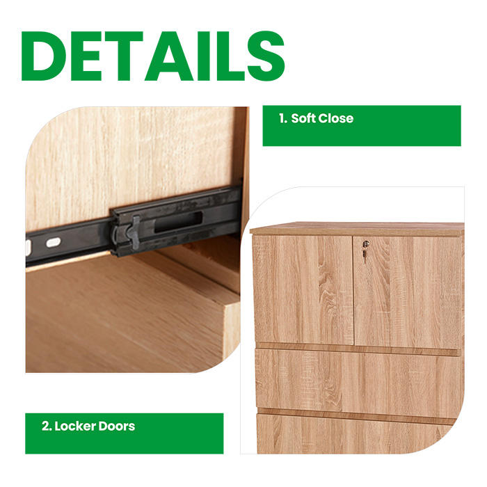 Modern Sonama Durable Oak Plywood File Cabinet with Lock & 3 Chest Drawers Amino Paper Laminated Storage Boxes & Bins