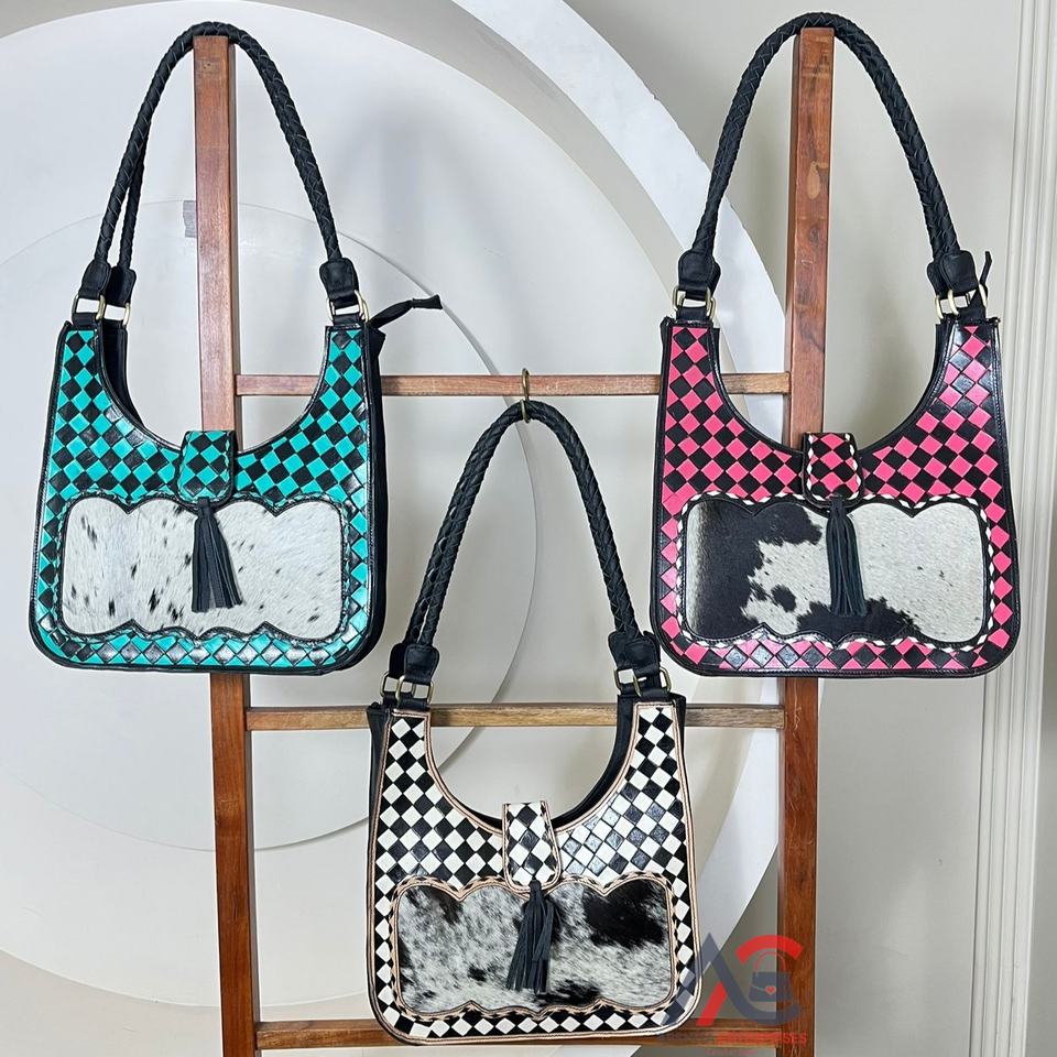 Product name:Hand Tooled Checkered Leather Women Shoulder Handbags