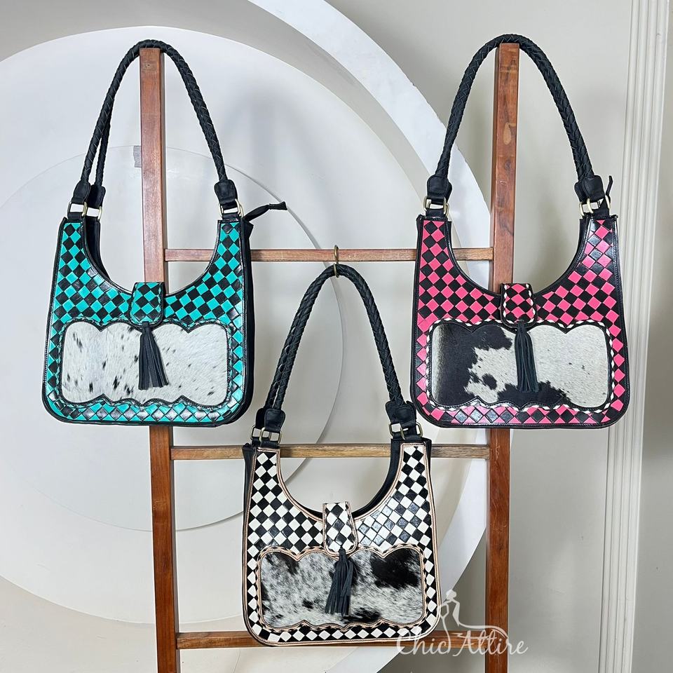Product name:Hand Tooled Checkered Leather Shoulder Handbags