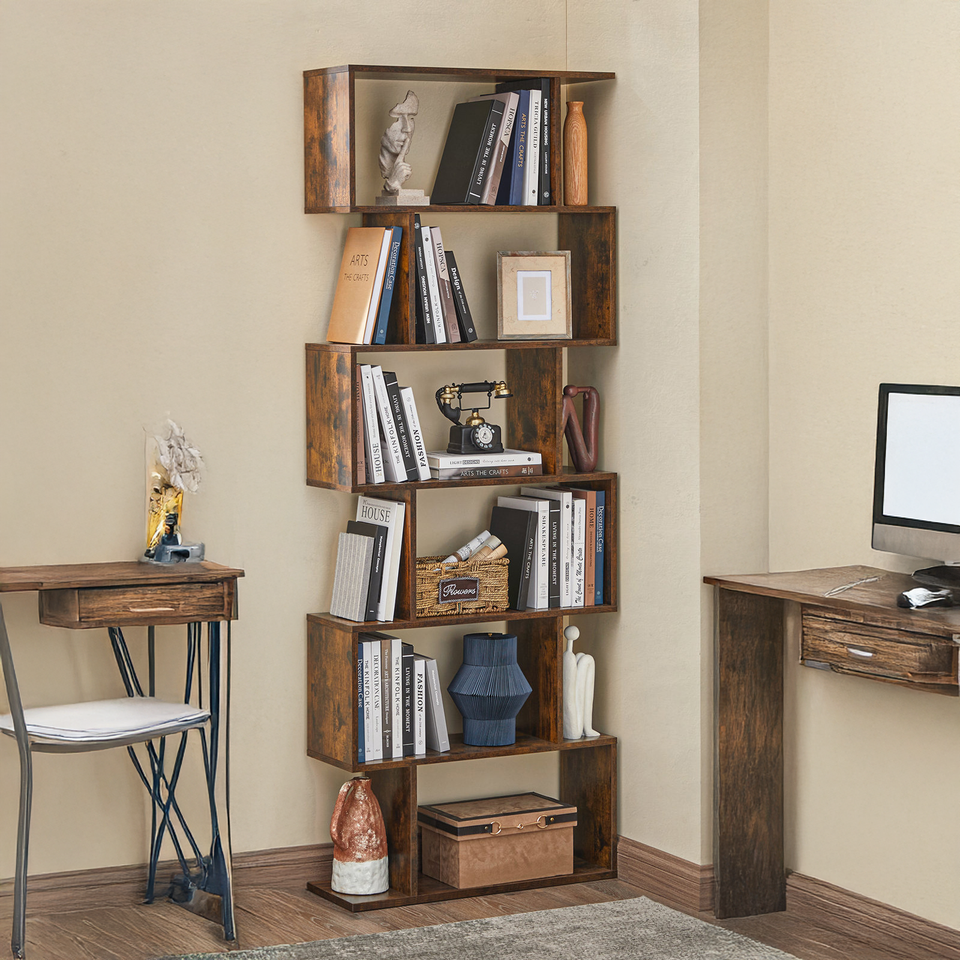 Factory Custom Wooden Metal 6-Tier Multifunctional Bookcase for Living Room Bedroom-Customizable Color Display Rack Book